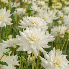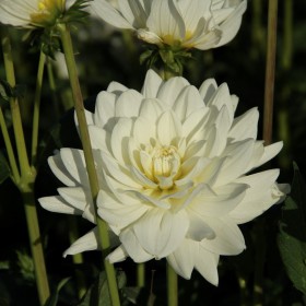 Weiß, gelbgrünes Herz, Höhe 90 cm, sehr haltbare, 10-12 cm große Blüten.