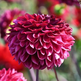 Dekorative Dahlie. Von der Herz rosa bis zur dunkelroten Färbung an den Spitzen der Blütenblätter. Blütengröße 10 cm.