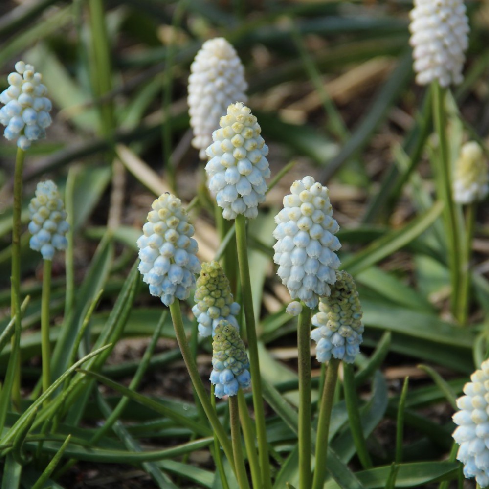 Perlweiße Blüten in einer 5 cm langen Traube, die sich mit zunehmender Reife in ein helles Veilchenblau verwandelt.