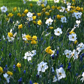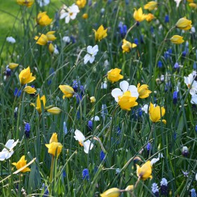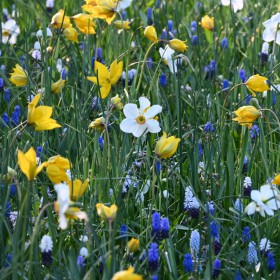 Eine natürlich aussehende Mischung von Zwiebelpflanzen, die sich zur Verwilderung auf einer Wiese oder in einem Obstgarten eignet. Bestehend aus: