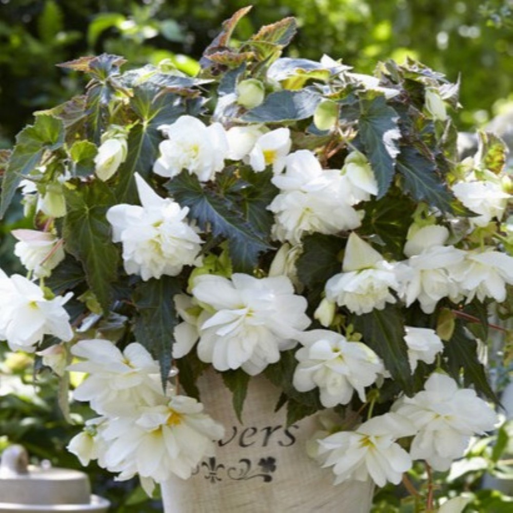Richly flowering Begonia with beautifully shaped, uniform, white flowers. Its hanging growth habit makes this Begonia ideal for hanging baskets or tall pots.