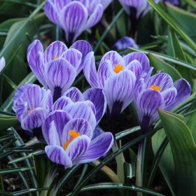 Large flowering crocus, blue with white striping. Flowering time: March-April. Height 15-20 cm.