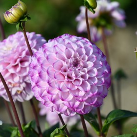 Baldahlia, soft lilac pink with a purple accent on the tips of the petals. Flower size 8 cm.
