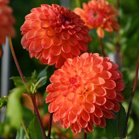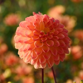 Fully filled, spherical flowers, the petals are soft orange and colouring towards the centre of the petals to light yellow. Flower size 9 cm. Very suitable as a cut flower.