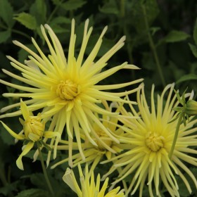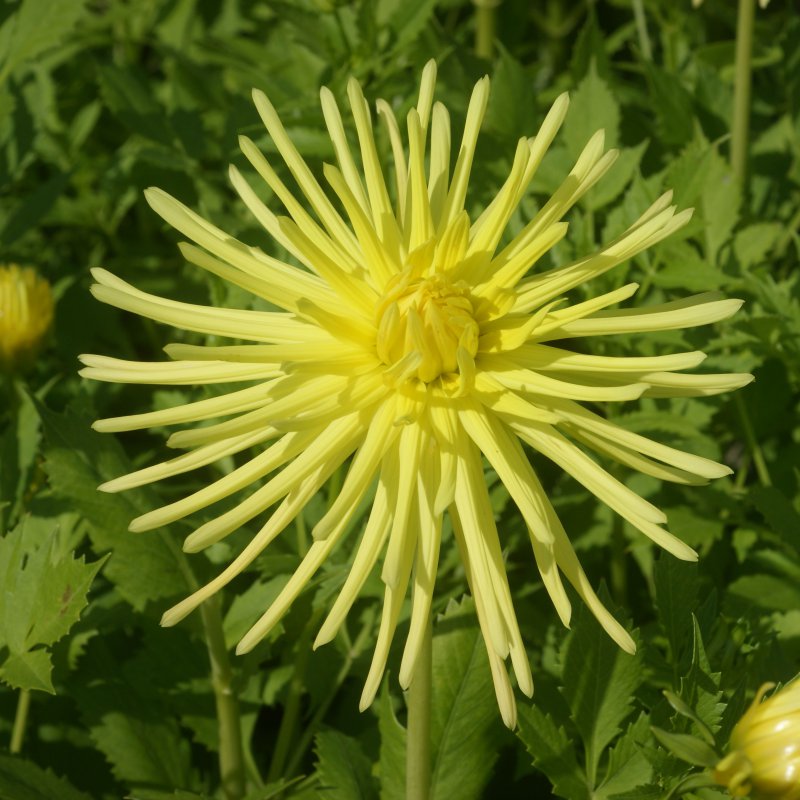 Beautiful yellow cactus dahlia with a flower size of approx. 15 cm and a height of over 1 metre.