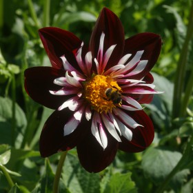 Very dark red with a white collar, height 90 cm., flower size 7-8 cm.