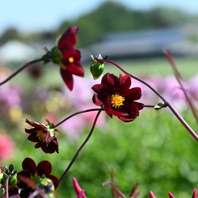 Small dark red, frivolous flowers with a chocolate scent. A good bee plant.