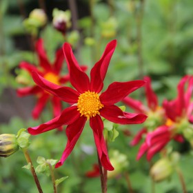 Red, height 80 cm., star shaped flower, flower size 13 cm.