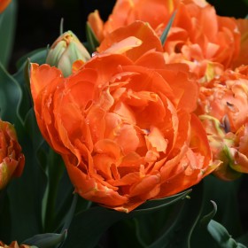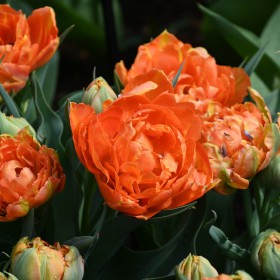A double early tulip with orange flowers. Only 20-25 cm high.
