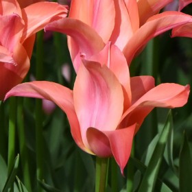 Beautiful lily-flowered tulip, soft orange with warm yellow.