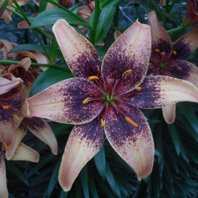 Orange brown, “airbrushed” much darker at the middle , height 80-90 cm.