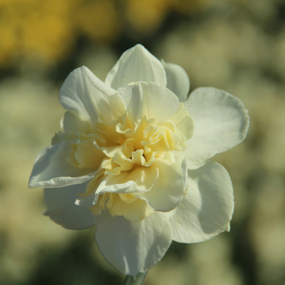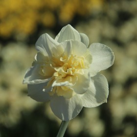 A double-flowered white daffodil with creamy yellow petals in the centre. Not too large flowers, lightly scented.