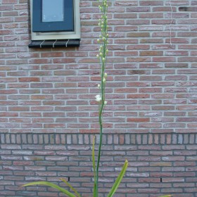 Cape hyacinth. Long flower spikes with nodding, bell-shaped flowers. Beautiful for the border and a perfect tub plant. Summer flowering. Strong bunches with filled, creamy white flowers. The flower stalks are more than one meter high.