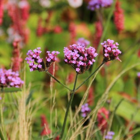 Argentinian vervain. Long flowering border plant with an airy growth habit, often used as a weaving plant. The flowers attract many butterflies and insects. If the winter is not too cold, the plant remains.