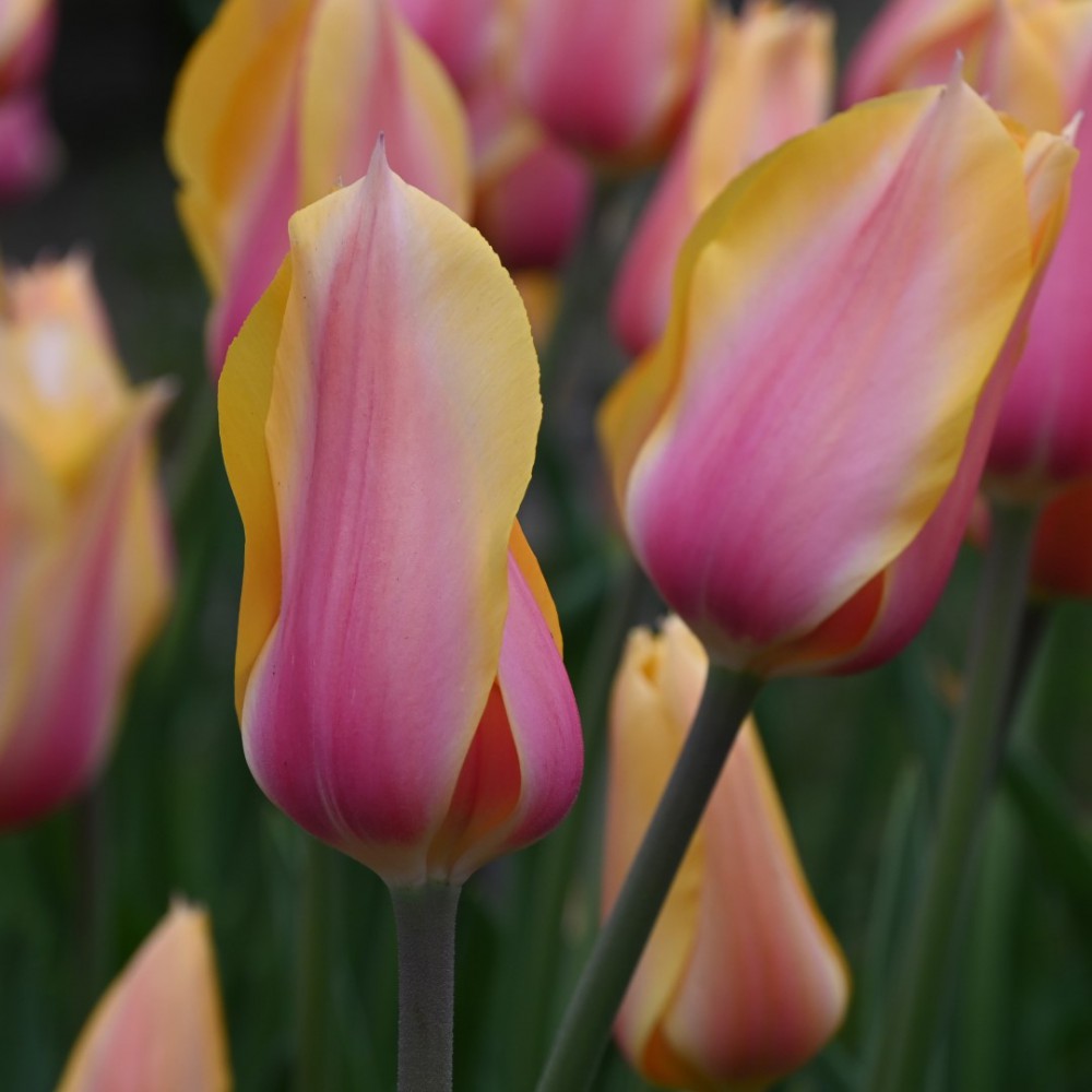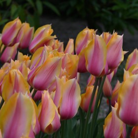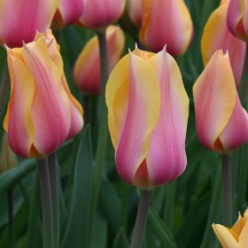 Graceful, Single Late Tulip with somewhat pointed flowers giving it something of a lily-flowered tulip as well. The flower colour is a combination of soft yellow and soft pink shades.
