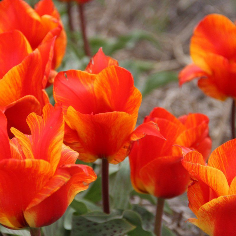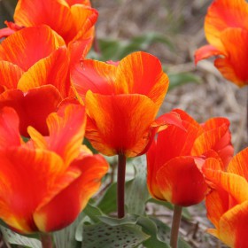 Oranjegeel gevlamde bloemen. Hoogte 15 cm.