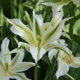 Sierlijke leliebloemige viridiflora tulp. Wit met groene zweem.