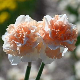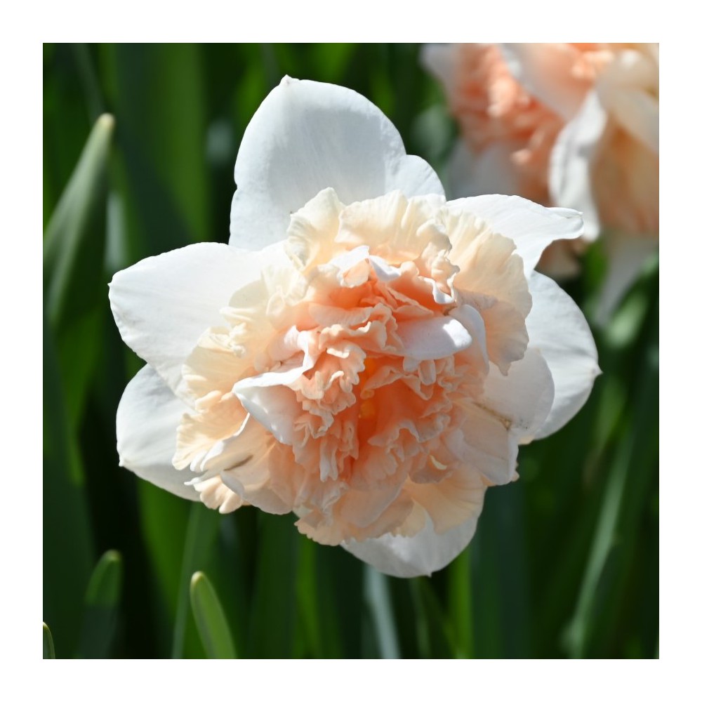 Prachtige witte narcis met een volledig gevuld roze hart. Heerlijk zoet geurend.